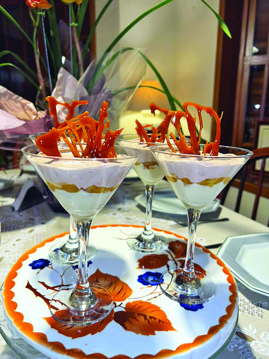 O prato foi criado por ela mesma, com inspiração nos doces feitos pela sogra, Ana Paula San Martin. “O nome da receita homenageia a origem oriental do damasco, fruta que traz delicadeza a esta sobremesa”, explica.