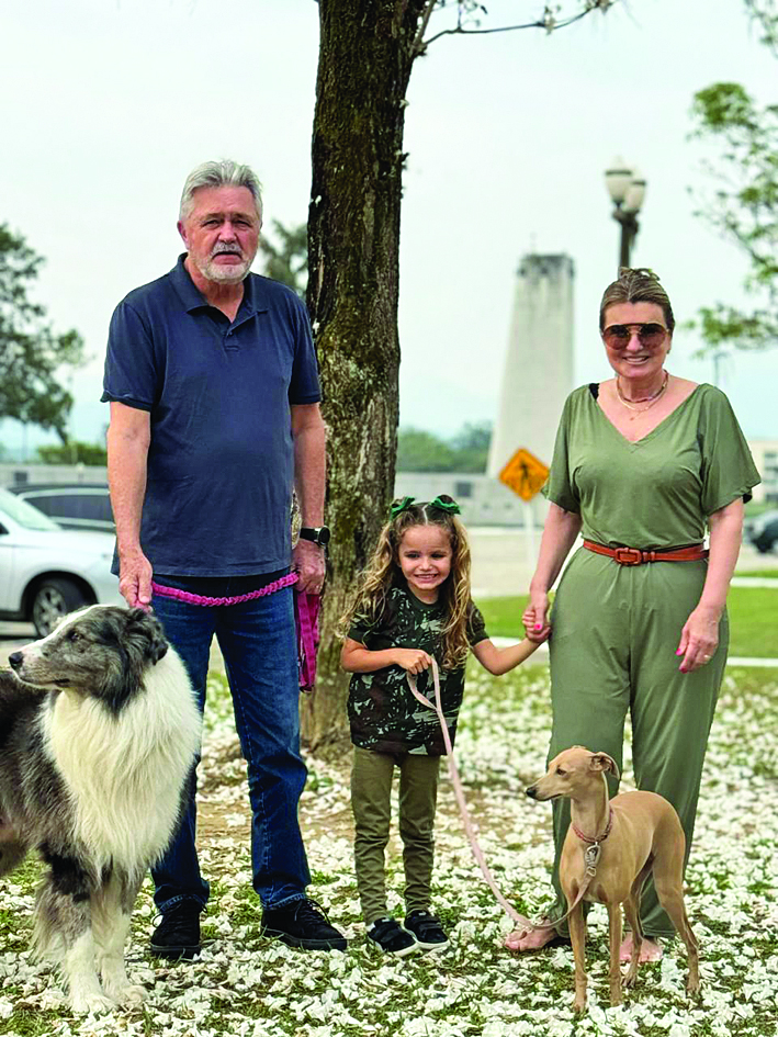Catarina Gonçalves Emídio com os avós Sérgio Castagnino e Rosana Azevedo e também com os pets Pantufa e Nhãduti